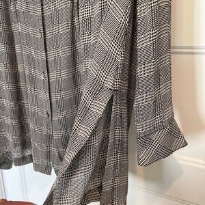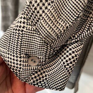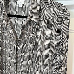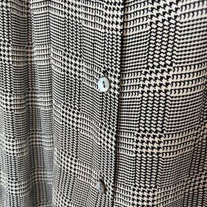 Description: J. Jill XL Petite button-down tunic blouse featuring a black and cream plaid pattern.