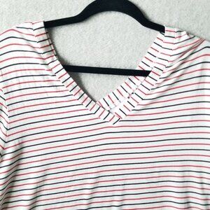 J Jill Size XL Striped VNeck Stretch Tunic Top Pullover 3/4 Bell Sleeve Comfy