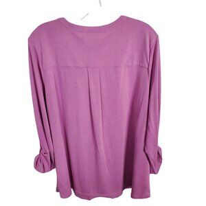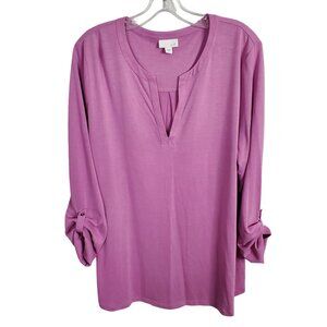 J Jill Size XL Top Tunic Roll Tab V Notch Modal Knit Light Stretch Fluid Purple