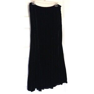 J Jill Black Silk Rayon Blend Crushed Burnout Velvet Feminine Dark Romantic Whimsigoth Boho Grunge Vamp Witchy Hippie Steampunk Fairygoth Victorian Maxi Pull On Skirt with Elastic Waist