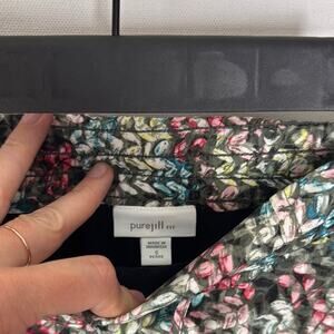 Gently Used Pure Jill J. Jill Fit Skort. This is a women’s small petite. Multicolor pink, red, blue, green floral pattern throughout. Drawstring waist. Front pockets. Built-in liner.