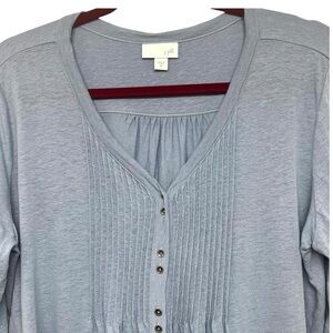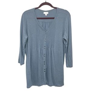 J. Jill Slate Blue Linen Modal Pintuck Button Front Casual Blouse Tunic Top Women’s Medium