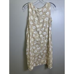 J Jill Sleeveless A Line Linen Dress S Pockets Beige Floral Print Beachy Cottage