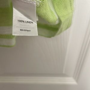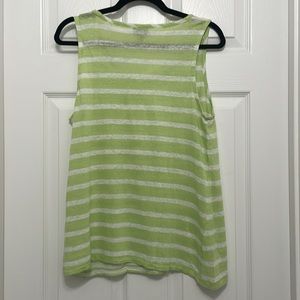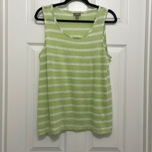 J. Jill Sleeveless top, lime green and white, 100% linen, size medium