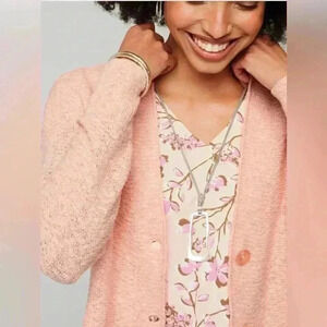 J Jill Slub-Textured Button-Front Cardi pink macaron NWT Size Large petite