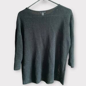 J. Jill Small Black Sweater 1/2 Sleeve Linen Blend