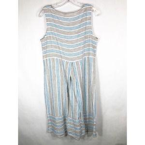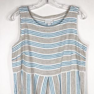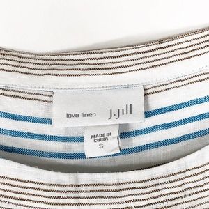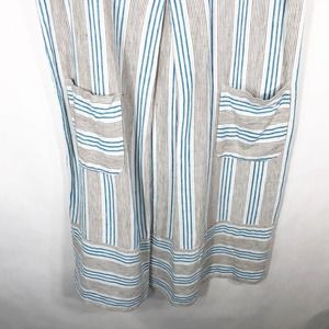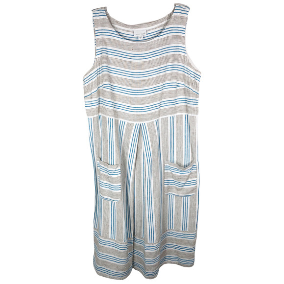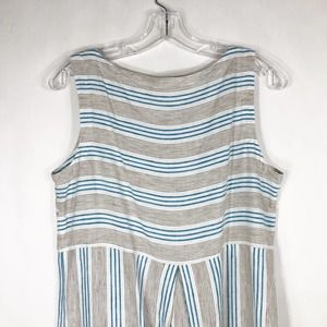 J Jill Small Dress Love Linen Stripe Blue White Sleeveless Knee Length Pocket733