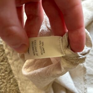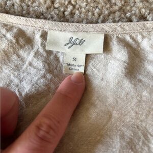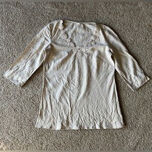 J Jill Small Tunic Blouse Linen Cotton Blend V Neck Crochet Lace Beige Boho