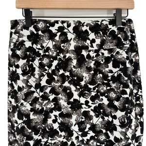 J. Jill Wearever Collection Smooth Fit Pencil Skirt Black White Floral Sz S PET