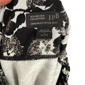 J. Jill Smooth Fit Pencil Skirt Small PETITE Wearever Black White Floral Stretch