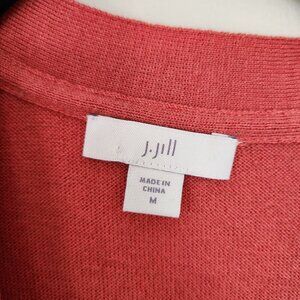 J. Jill Soft Wool Blend Long Coral Salmon Cardigan Sweater Pockets Size Medium