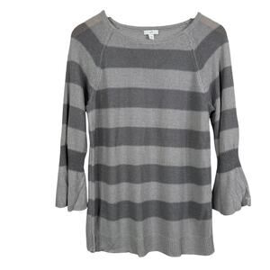 J. Jill Sparkle Flounce Metallic Tonal Stripe Linen Blend Sweater Size S NWT