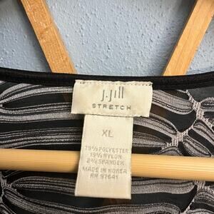 J. Jill sheer black and silver stretch crossover blouse. Long sleeve. Size XL