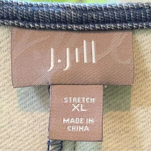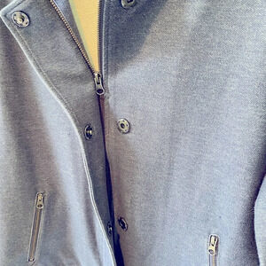 Very clean condition, comfortable and stretch no collar jacket that looks like denim designed by J. Jill. Full front snaps and zipper with 2 monogrammed “YKK” front zippers. There are also inside pockets.