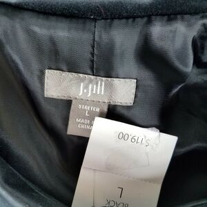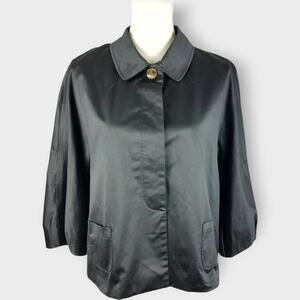 J. Jill Stretch Jacket Coated Cape Black Cotton Satin Shiny Size Large NWT $119