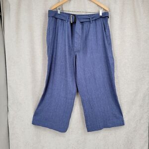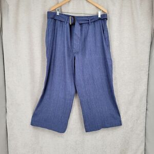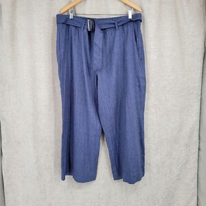 J. Jill Stretch Linen Blue Cropped Wide Leg Pants Trousers with Belt NWT Women's