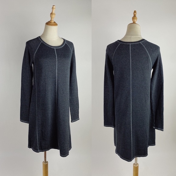J. Jill Stretch Striped Long Sleeve Lounge Dress Gray Black Womens XS