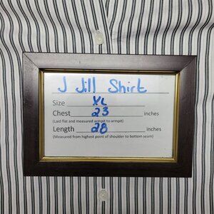 Elevate your professional wardrobe with this J Jill striped button-down shirt. Designed for a polished look, it features a classic collared neckline and a comfortable fit in XL. Perfect for business settings or a smart-casual style.