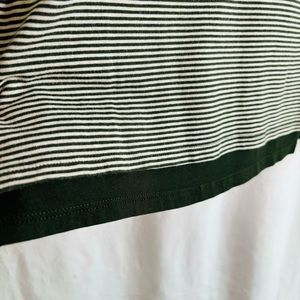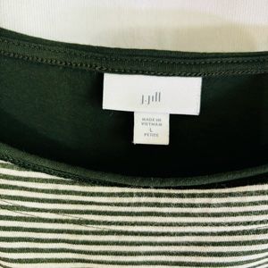 J. Jill Striped Double Layer Cotton 3/4 Sleeve Boxwood Green/Cream Tee Size Lg