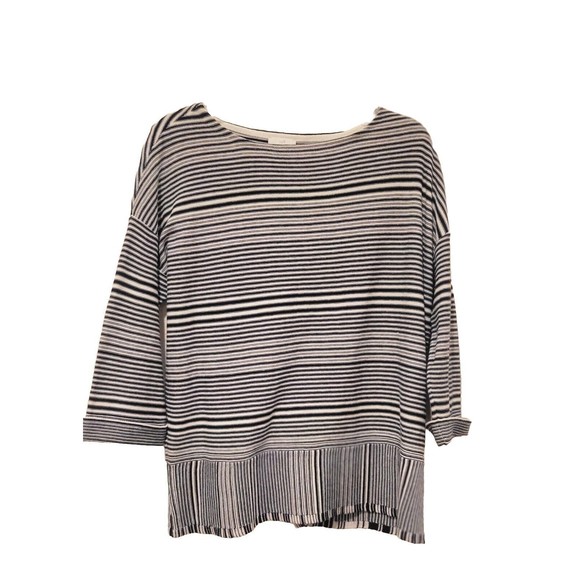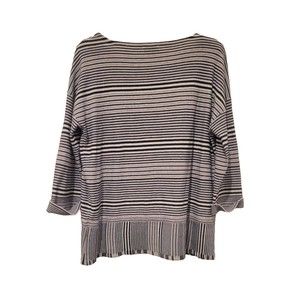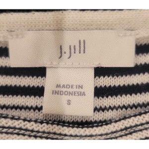 J. Jill Striped Knit Sweater Top Cotton Black White 3/4 Sleeve Boxy Size Small