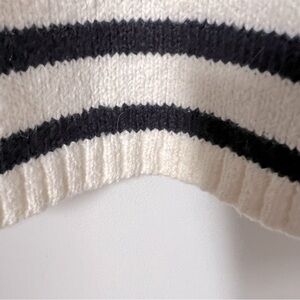 Chic and cozy, this striped Navy and Cream open front sweater cardigan is perfect. Its classic design offers both style and comfort. The perfect Nancy Meyers piece to wear at the beach house or weekend comfort! Pair with a pair of linen wide leg pants and a basic white tee. Simple, but stylish.