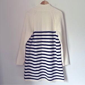J. Jill Striped Longline Open Sweater Cardigan Knit Coastal Grandma Cream/Navy