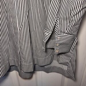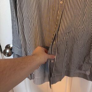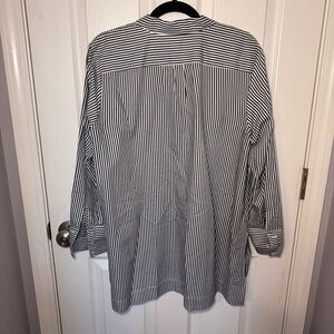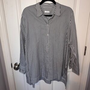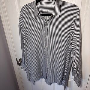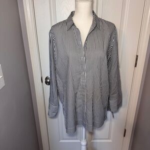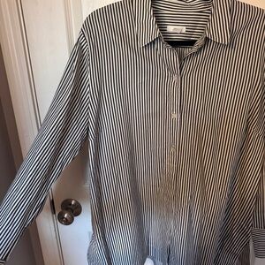 Gray and white striped button down tunic top from J. Jill. Cotton and silk blend material. Side splits.