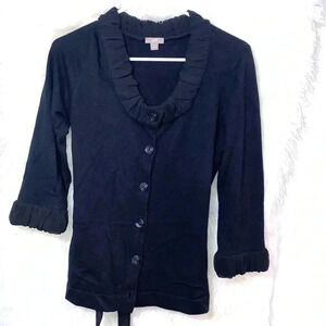 J Jill Sweater Womens Angora Blend Tie Waist 3/4 Sleeve Sweater Black Sz Small