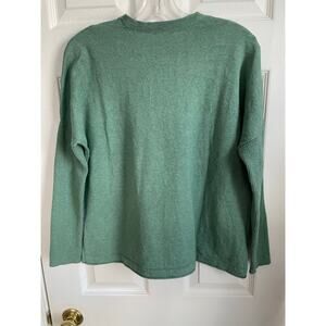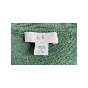 J. Jill Sweater Boxy Cotton Wool Silk Blend V-Neck Green Ribbed Sleeves Sz SP