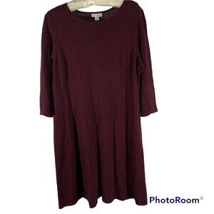 J. Jill Sweater Dress Size Medium Petite Burgundy Diamond Pattern Ponte Knit
