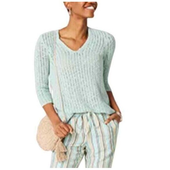 J Jill Sweater M Aqua Blue Open Knit Tunic Coquette Resort Coastal Beach Boho