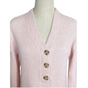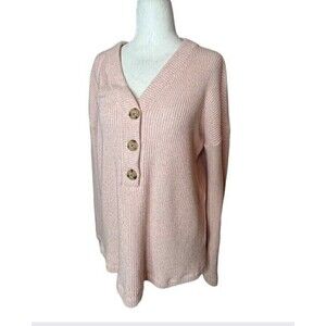 J Jill Sweater Pullover Henley V-Neck Long Sleeve Button Front Waffle Pink SZ S