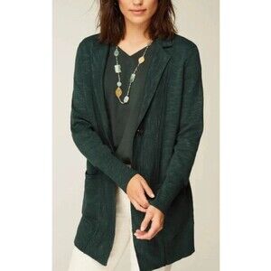J Jill Sweater Size Medium Forest Green Cotton Knit Long Cardigan Pockets