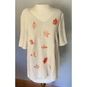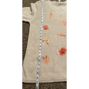 J Jill Sweater Sz Small Beige Embroidered Floral Linen Blend Lightweight Comfy