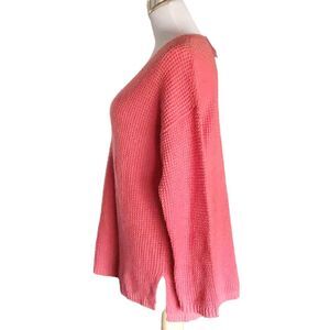 J Jill Sweater Textured Knit Women's Medium Red Coral V-Neck yak wool blend