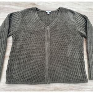 J. Jill Sweater V-Neck Button Down Knit Women's Green Sz. M Casual Warm