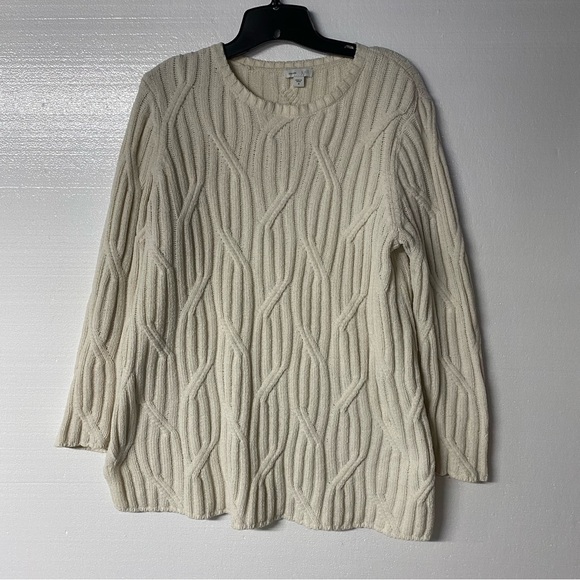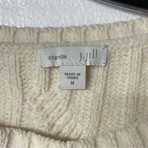 J. Jill Sweater Women M Ivory Cable Knit Crew Neck Chunky Chenille Pullover Soft
