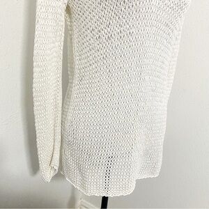 J. Jill Sweater Women Med White Mercerized Cotton Open Knit V-Neck Cover Up EUC