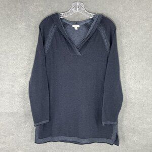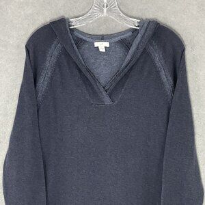 J. Jill Sweater Women Sz S Blue Cotton Blend Pullover Knit Hoodie Athleisure