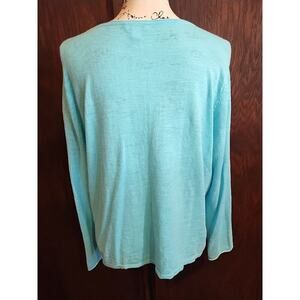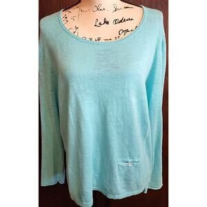 J Jill Sweater Womens Large Turquoise Blue Scoop Neck Linen Cotton Pullover Top