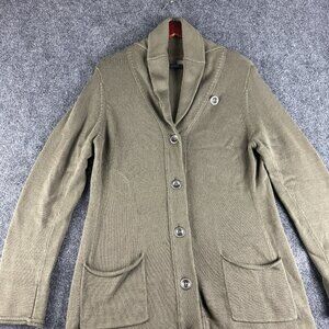 J Jill Sweater Womens Medium Green Cardigan Long Sleeve BUtton Up Collar Pockets