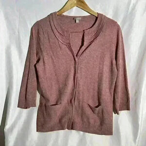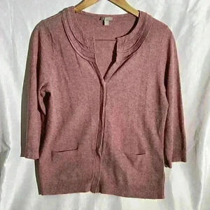 J Jill Sweater Womens Medium Heather Pink Wool and Silk Cardigan Knit