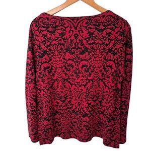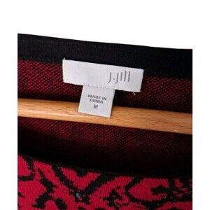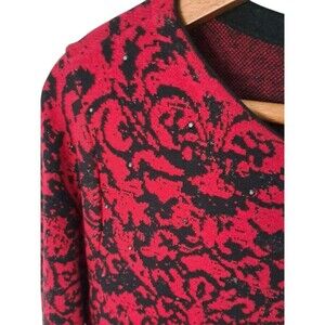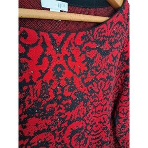 Tags: j jill, women, size medium, red, black, damask, long sleeve, sweater, rhinestone, christmas, knit, holiday, party, cocktail