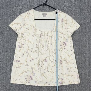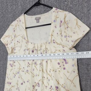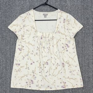 J. Jill Sweater Womens Petite Small Ivory Floral Stretch Knit Short Sleeve Top.