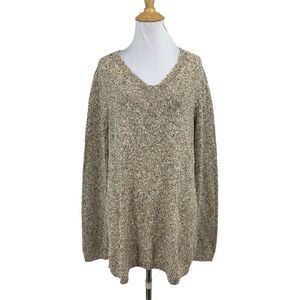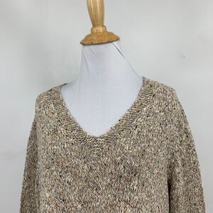 J Jill Sweater Womens S Brown V Neck Marled Knit Long Sleeve Pullover Tunic