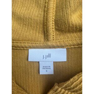 J Jill Sweater Women's Small Yellow Hooded Pullover 1/4 Button Cotton Blend