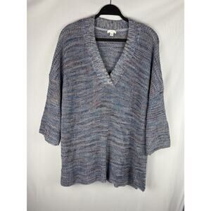 J Jill Sweater Women's XL Blue Multicolor Pullover V-neck Top Cozy Soft