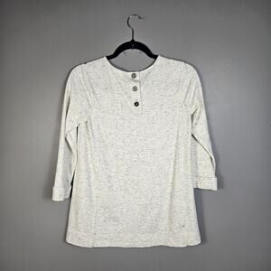 J. Jill Sweatshirt Cream Black Speckled Heather 3/4 Sleeve Button Back XS Petite