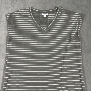 J. Jill T Shirt Dress Womens Medium Gray Striped Short Sleeve V Neck Pockets