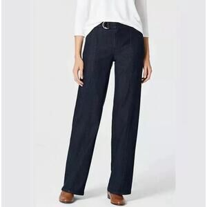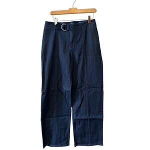 New J Jill denim Metropolitan wide leg denim trouser jeans in nightfall wash (dark blue). Wide Leg Style with attached belt and front leg seam. Size 6